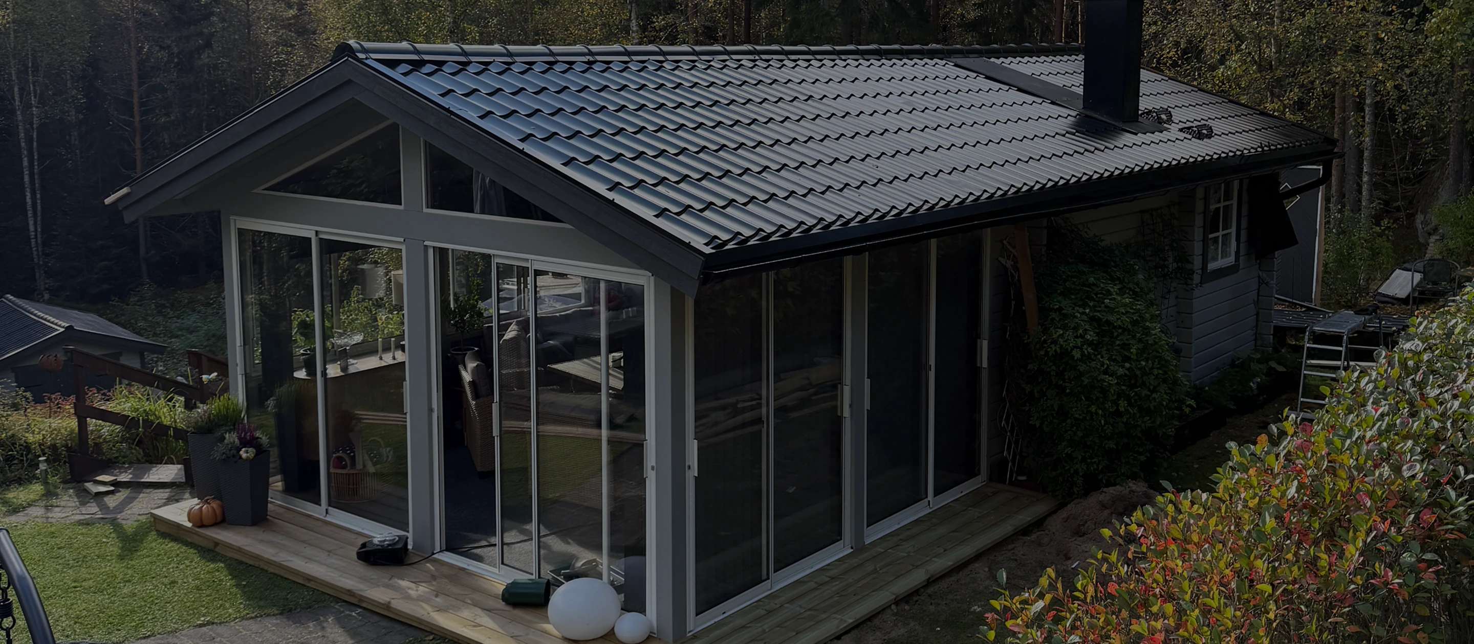 Vi bygger allt från ett enkelt tralldäck till ett helglasat uterum du kan använda hela året. Anpassat efter ditt hus och din tomt.